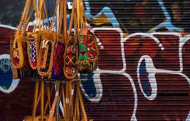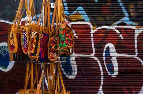 In the autumn of 2021 the echoes of the pandemic were still ringing loud. A visit to Portobello Road market was intended to be a reaffirmation that things were getting better and good times were just around the corner, but the market was as quiet as I'd ever known it, with few shops and stallholders sounding convinced about the prospects for a prosperous day hawking their wares to the passers-by. Happily, some vibrance and colour was still in evidence in this part of West London, thanks to the activities of local graffitti artists and a strategically placed bag stand.