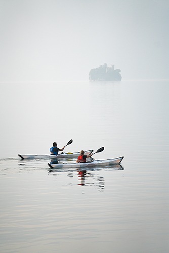 The mirror-calm waters of the Lago d'Iseo in mid-October is irresistible for kayakers, even when the mist shrouds the tiny Isola di Loreto and completely obscures the far shore of the lake. Sometimes you just have to admire the view and press the shutter button...