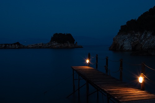 What is it about lights at dusk when there's no-one around? Or pinpoints in the distance that you know are made by humans, but you can't see them. Comforting and mysterious in equal measure. This jetty in Corfu was devoid of people, or indeed boats, but the lights tell you they must be around somewhere...