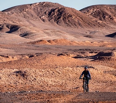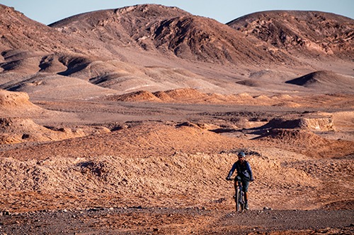 So there I was, panning my lens across the seemingly endless, arid vista of the Atacama desert near Valle del Arcoiris (Rainbow Valley) when up, out of the scorched landscape, pops... a cyclist, in full mountain bike attire. In truth, not as rare a sight as one might imagine: adventure cycling is a big thing in these parts, but I naively thought these two-wheel enthusiasts would keep to the designated roads and tracks if only because assistance would be fairly quick to arrive if they got into difficulties. But I guess that's not the point of adventuring, and for this cyclist at least, he'd been through the desert on a horse ...OK, bike... with no name.