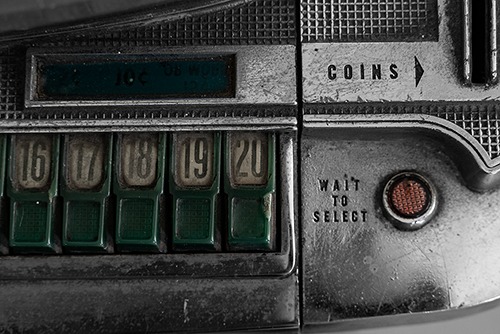 An old juke box, with abundant patina at no extra cost. It nestled in the back of a taverna in a mountain village on Crete, unused and maybe unusable, but the proprietor was proud of their musical artefact and even invited me to photograph it.